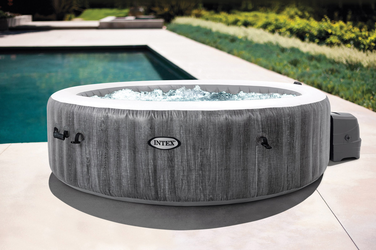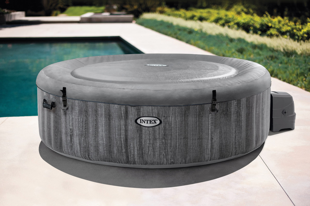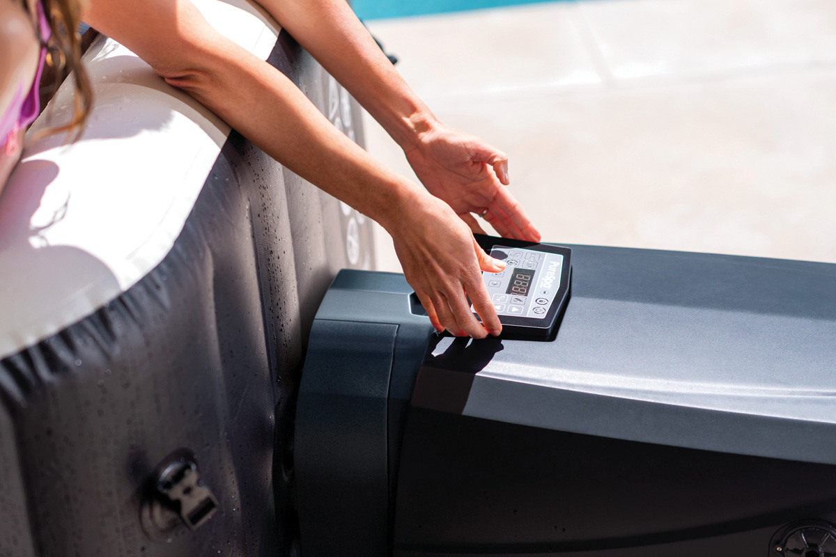 Zunanji spa z grelnikom Število sedišč: 6 Prostornina vode: 1098 litrov Notranji premer: 165 cm Zunanji premer: 216 cm Višina: 71 cm Material izdelave: ploščati PVC Brezžični nadzorni panel za nastavitev temperature Do 48 ur uporabe panela z enim samim polnjenjem Pritrdi se na vrh spa-ja za maksimal