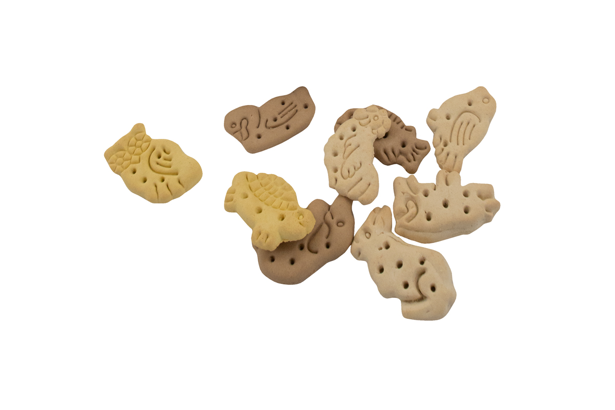Piškoti za pse v obliki živali, z okusom vanilije. Psi jih obožujejo. So idealni za motivacijo psa med treningom, učenjem. Dopolnilna hrana za pse. Sestava: žitarice, različni sladkorji, olja in maščobe, derivati rastlinskega izvora, minerali, zelenjava, sadje. Analitske sestavine: surove beljako
