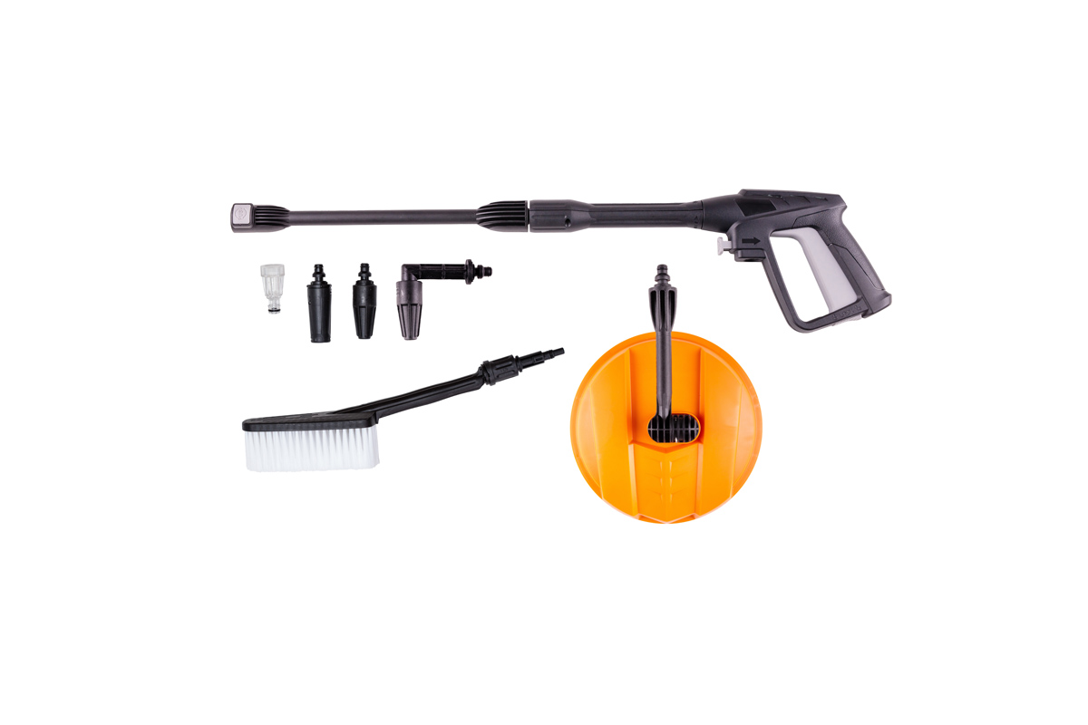 Hitri priključek cevi s filtrom Nastavljiva šoba Turbo šoba Turbo šoba 90° Krtača za čiščenje tal (pločniki, poti) Ravna krtača Pištola za pranje s hitrim priključkom Posoda za detergent Cev za visok pritisk