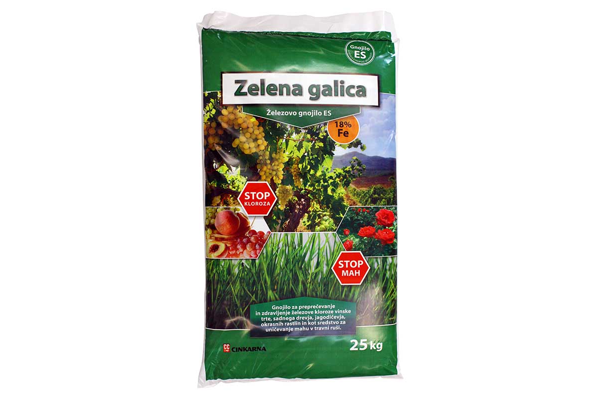 Je anorgansko mineralno gnojilo (železova sol), ki se uporablja za odpravljanje kloroze na vseh vrstah rastlin (30-40g galice/m2), tako da jo potrosimo čim bolj enakomerno po površini okoli rastlin in za odstranjevanje mahu v okrasnih zelenicah (30-40g galice/m2). Vedno trosimo pred dežjem. Pazimo, da sol ali raztopina soli ne pride v stik z betonskimi izdelki, z asfaltom ali s ploščicami, saj pusti rjave madeže, ki jih zelo težko očistimo. Uporaba zelene galice ni dovoljena v varovalnih pasovih