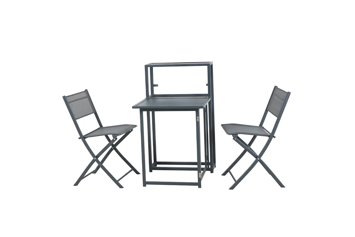 Tridelni zložljivi set za teraso Balkit je idealna rešitev za manjše zunanje prostore, kot so balkoni, terase ali manjši vrtovi. Zahvaljujoč praktični zložljivi zasnovi se set enostavno postavi, premika in pospravi, ko ni v uporabi, zato je popolna izbira za vsakodnevno funkcionalnost. Stabilna kon