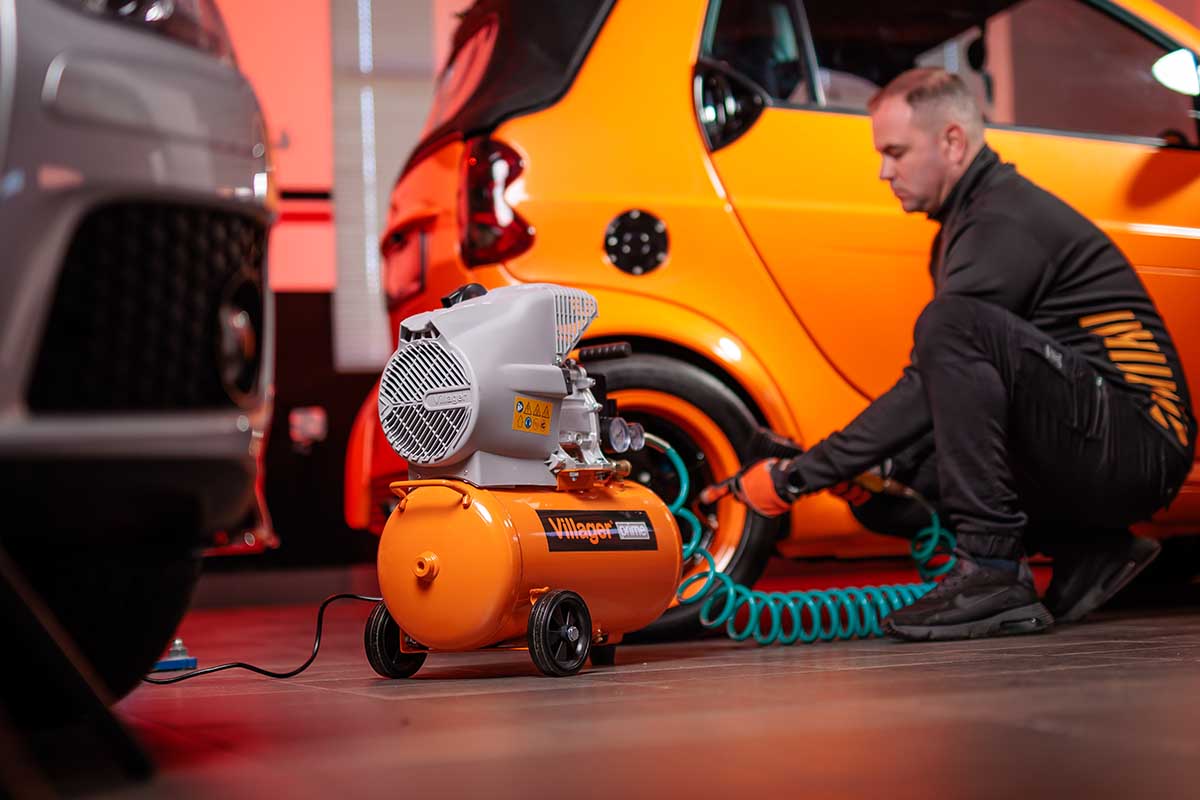- Moč motorja – Motor z močjo 1500 W zagotavlja zanesljivo delovanje in zadostno količino zraka za večino standardnih pnevmatskih orodij. - Delovni tlak – Maksimalni tlak omogoča učinkovito delovanje orodij, kot so pištole za barvanje, napihovanje ali izpihovanje. Tlak je tovarniško nastavljen in zaščiten z varnostnimi sistemi. - Prostornina rezervoarja 24 L – Rezervoar omogoča shranjevanje zadostne količine zraka, s čimer se zmanjša pogostost vklapljanja motorja. Večja prostornina omogoča dal