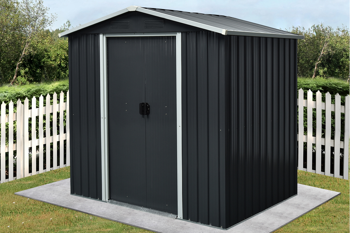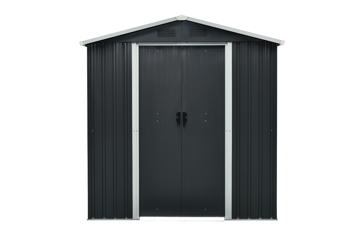Dimenzije: 119 × 184 × 156 cm Material ogrodja: pocinkano jeklo 0,6 mm 0,25 mm prevleka iz pocinkanega jekla Streha s štirimi prezračevalnimi odprtinami Dvokrilna drsna vrata Dimenzije: 82 × 154 cm Dodatne ojačitve za stabilizacijo Kovinski temelj ni vključen v ceno