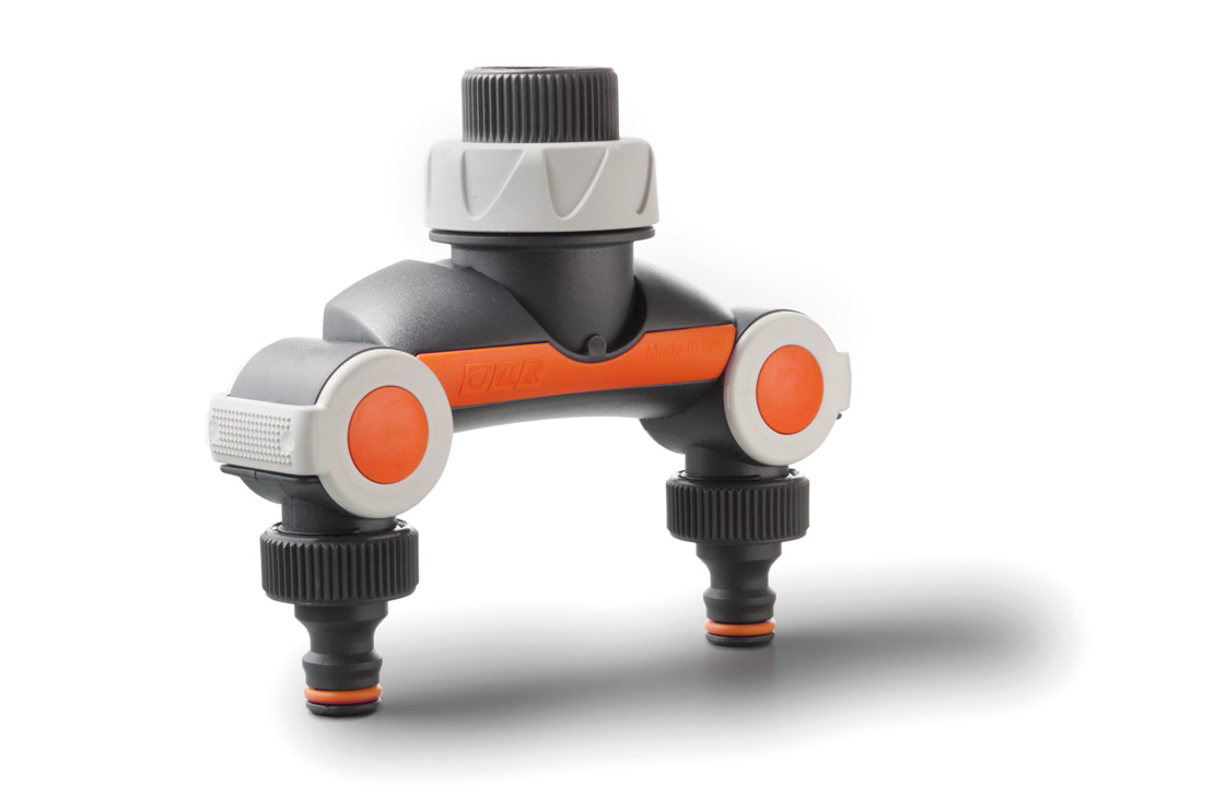Izvod za pipe z dvojnim izhodom in z ločenim nastavljanjem pretoka. Namenjen za cevi s premerom Ø 3/4”. Regulator-modulator pretoka za vsak izhod posebej omogoča ločeno nastavitev pretoka, vse do popolnega zaprtja.