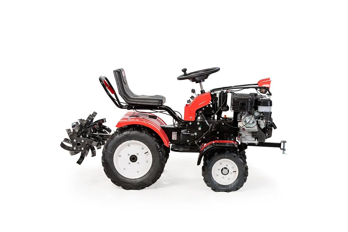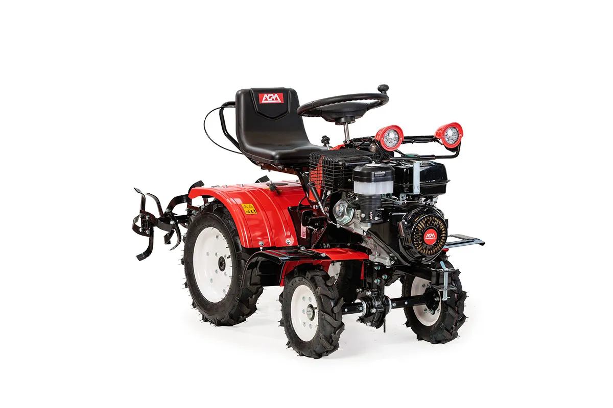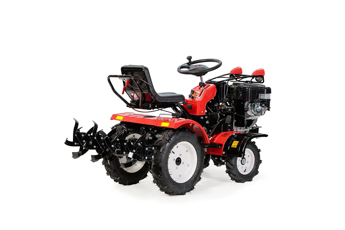 Rajderski kultivator je namenjen obdelavi različnih tipov tal na kmetijskih površinah, zlasti v sadovnjakih, vrtovih in na neravnem terenu. Opremljen je z bencinskim štiritaktnim motorjem, rotacijskimi noži za suho zemljo z delovno širino 105 cm ter sistemom prenosa z več stopnjami hitrosti. Naprava omogoča obdelavo tal ob enostavnem upravljanju zahvaljujoč sedeči zasnovi in preglednim komandam.