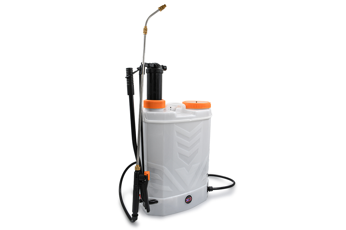 Akumulatorska škropilnica je namenjena za tretiranje rastlin z raztopinami v vrtovih, sadovnjakih in rastlinjakih. Baterijsko napajanje, ramenski pasovi, rezervoar s prostornino 14 litrov ter fleksibilna škropilna cev z regulacijo omogočajo enakomerno škropljenje. Ergonomsko oblikovan rezervoar je prilagojen hrbtu uporabnika, kar omogoča udobno nošenje in enakomerno nanašanje sredstva. Naprava je izdelana iz materialov, odpornih na kemikalije in korozijo, kar zagotavlja dolgo življenjsko dobo i