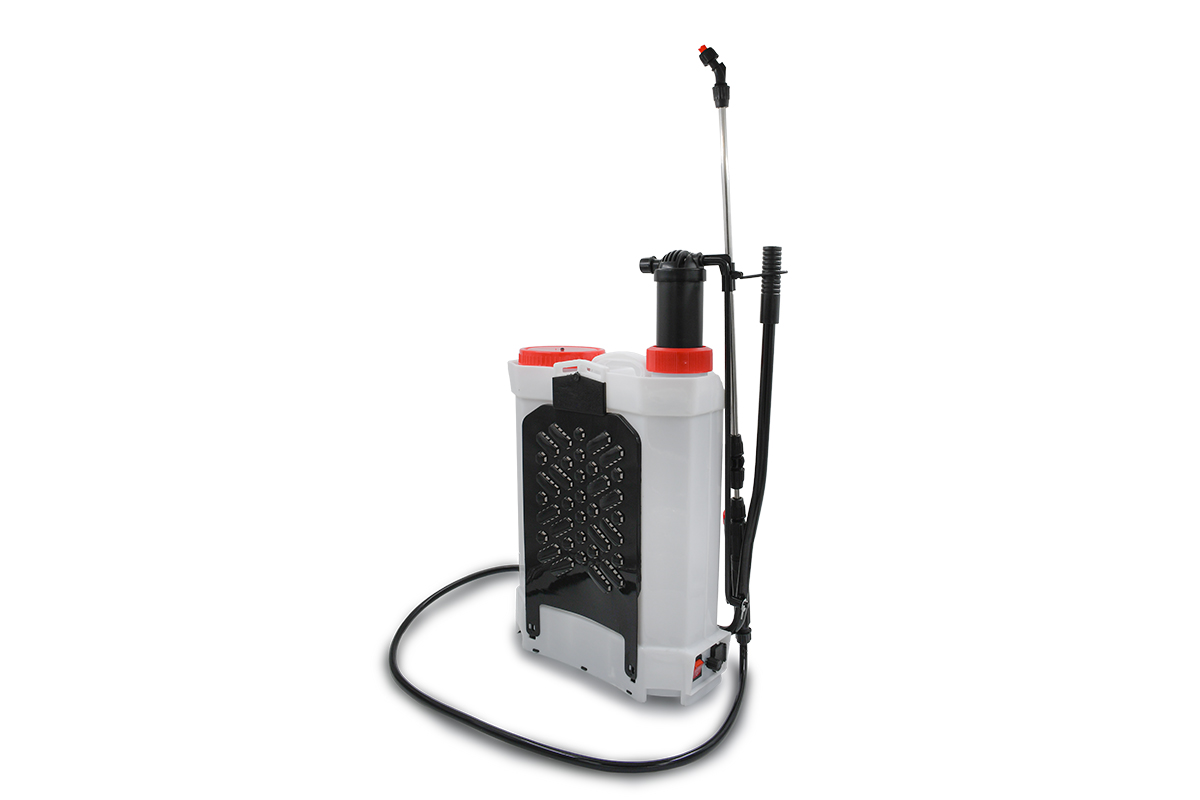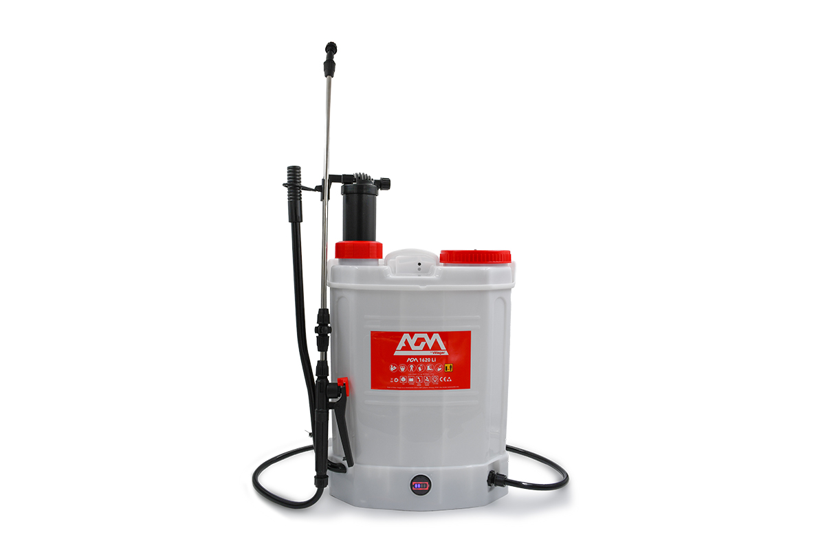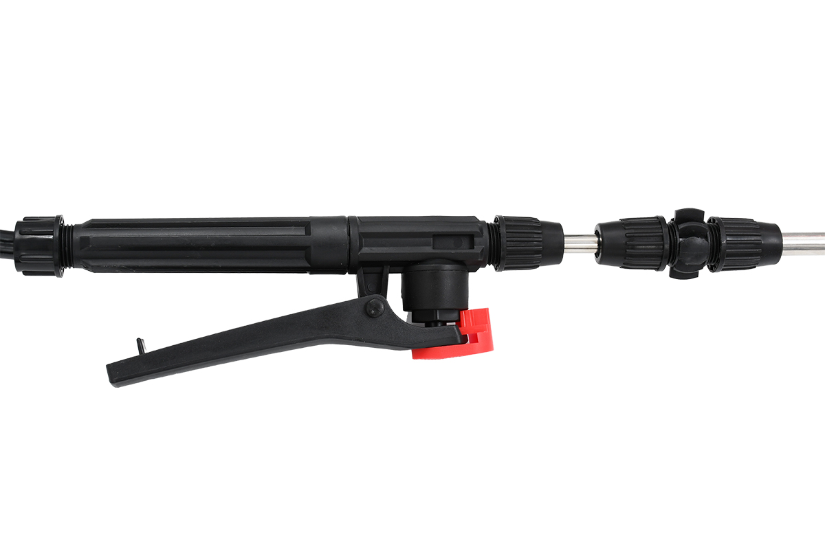 - Električna črpalka s stikalom – samodejno vzdržuje tlak in omogoča natančen nadzor zagona ter zaustavitve škropljenja. - Nastavljiv pretok tekočine – regulator pretoka omogoča prilagajanje jakosti curka. - LED indikator baterije – vizualni prikaz preostale kapacitete. - Več možnosti šob – dvojna šoba in možnost podaljšanja usmerjevalnika curka zagotavljata prilagodljivost pri tretiranju nizkih in visokih rastlin. - Vzdrževanje Po škropljenju izpraznite rezervoar, ga sperite ter spustite vodo