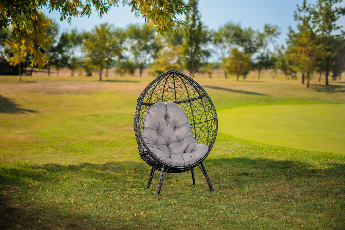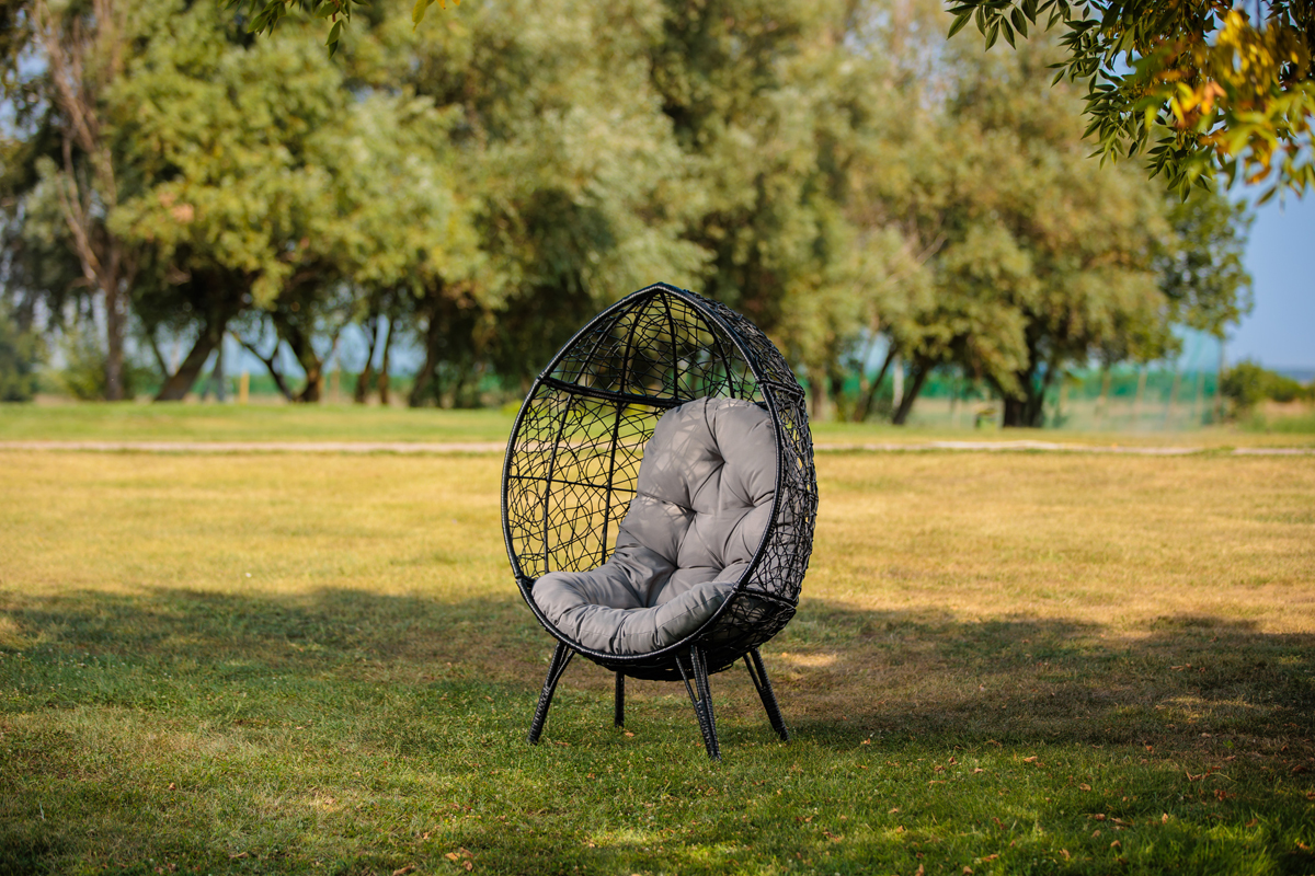 KD jajčni stol: Š 100 × V 118 × G 65 cm Skupna višina: V 150 cm Blazina: vodoodporna tkanina + polnilo iz PP vlaken × D 15 cm Pakiranje: 1 set
