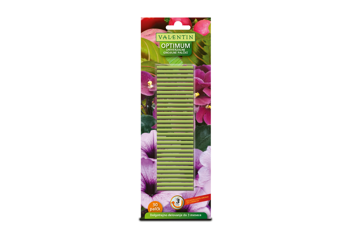 So namenjene gnojenju vseh zunanjih in notranjih rastlin posajenih v loncih in koritih ter na gredicah. Vsebujejo vsa potrebna hranila za zdravo rast in bujno cvetenje. Sproščanje hranil iz palčk traja do 3 mesece. Palčke potisnem v substrat med rastlino in robom lončka. Za balkonske rastline: 2 palčki na rastlino, šele tri tedne po presajanju. Od oktobra do februarja količino gnojila prepolovimo. Premer lončka: 10 cm- 2 palčki , premer lončka 14 cm- 3 palčke in premer lončka 20 cm- 5 palčk.P