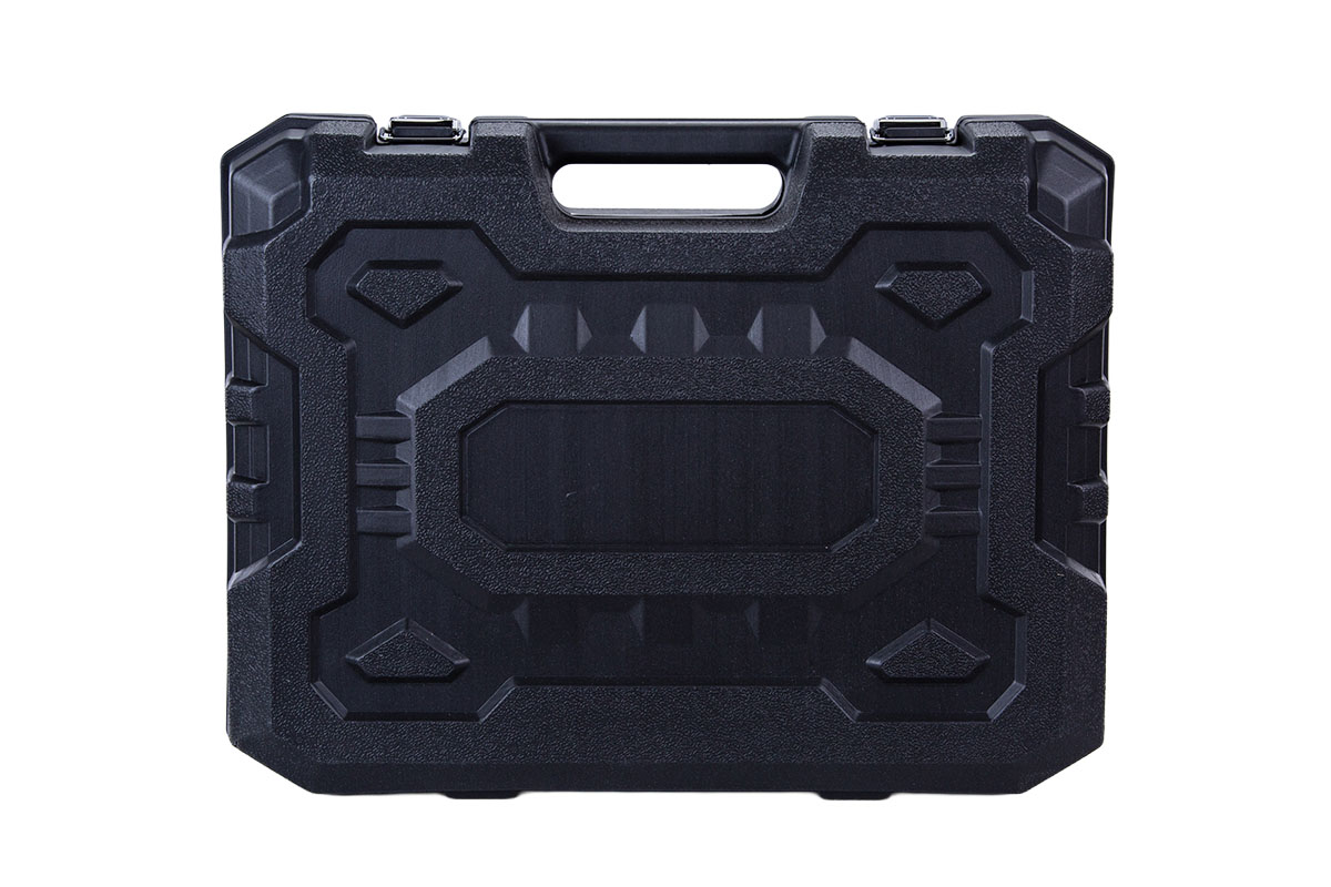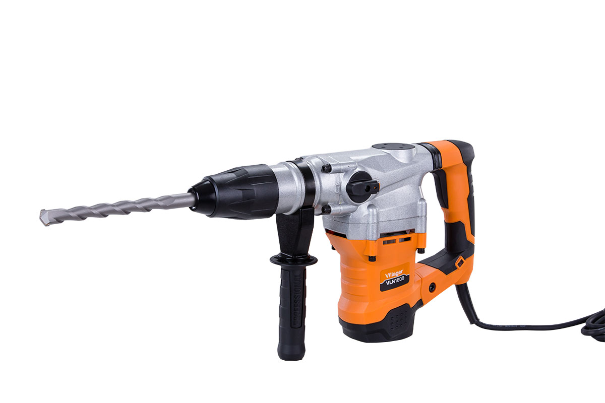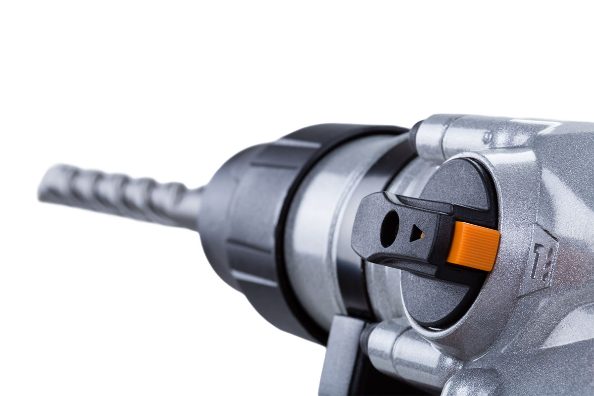 -Nastavljiv ročaj - Set svedrov in dleta - Omejilnik globine - Kovček