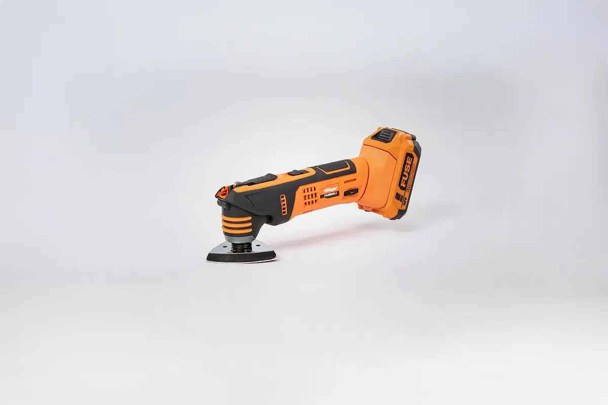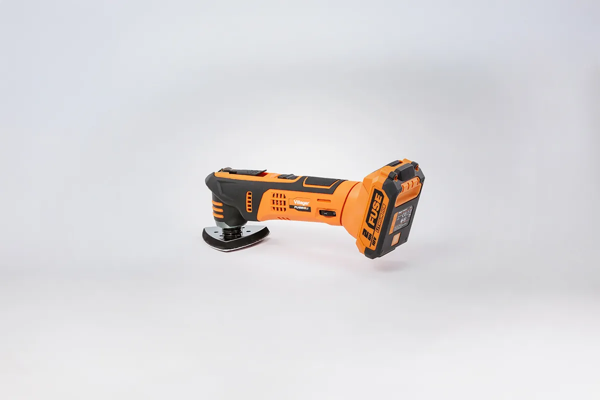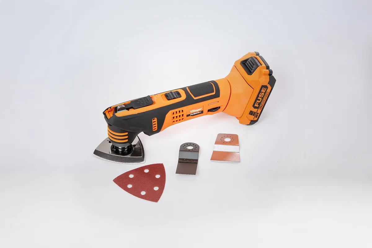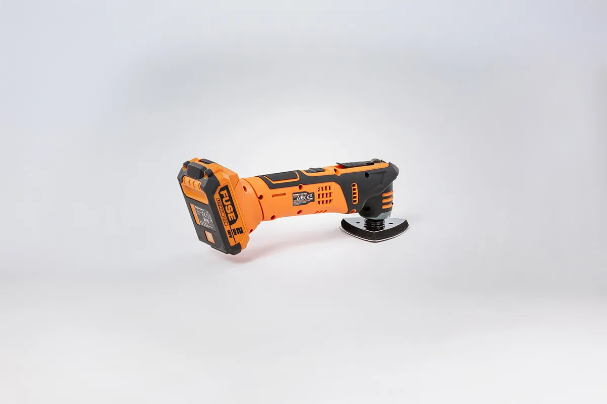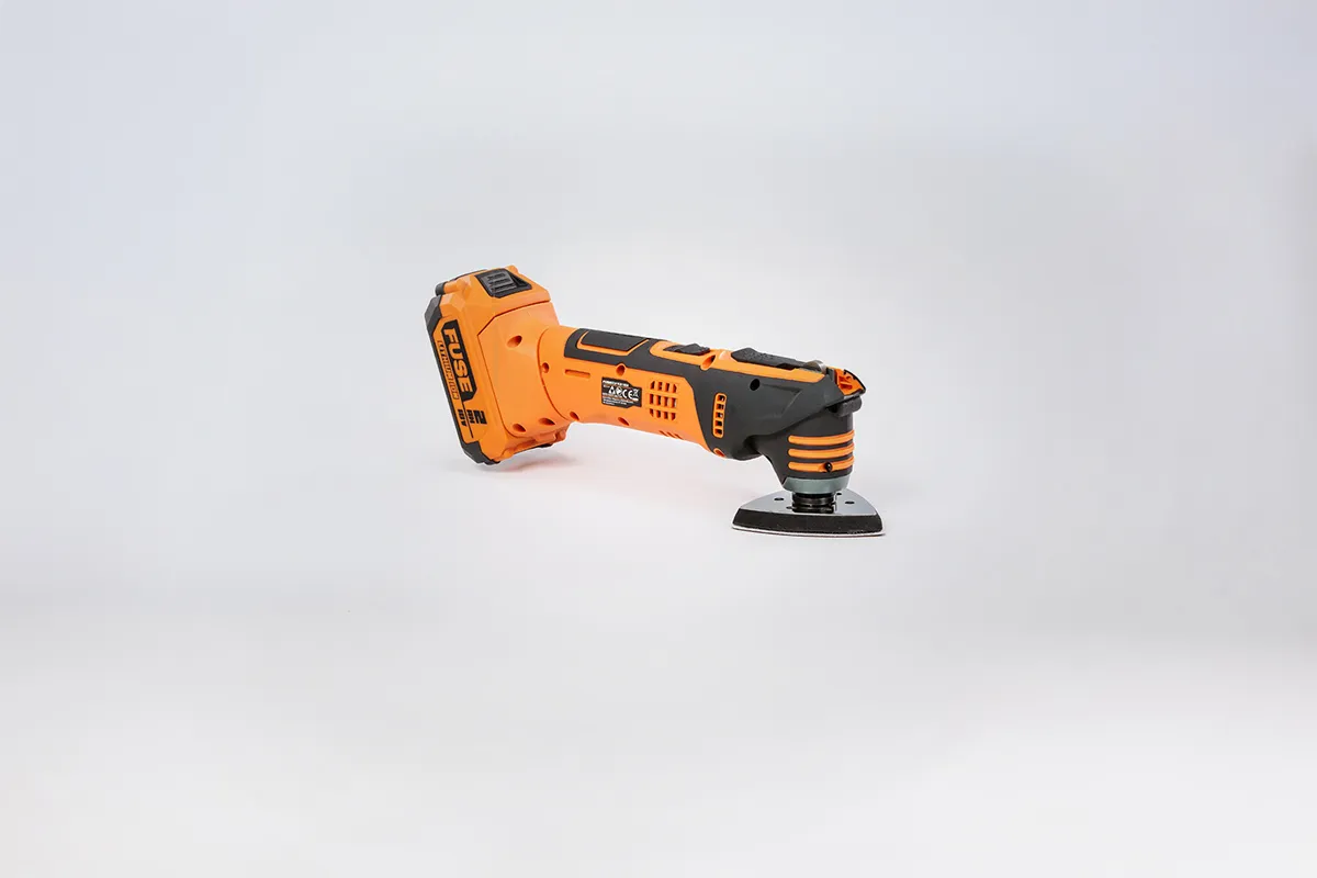 Čas delovanja z baterijo Fuse: 1,5 Ah – 20 min 2 Ah – 30 min 3 Ah – 40 min 4 Ah – 60 min 6 Ah – 80 min Priporočeni tipi baterij: 1,5 Ah, 2 Ah, 3 Ah, 4 Ah Strgalo List žage Podloga za brušenje Brusni listi Opomba: Naprava se dobavlja brez baterije in polnilnika.
