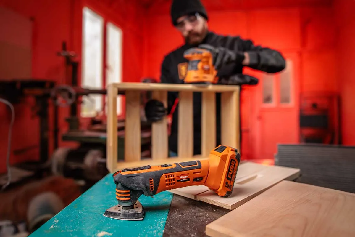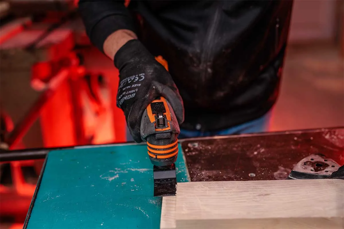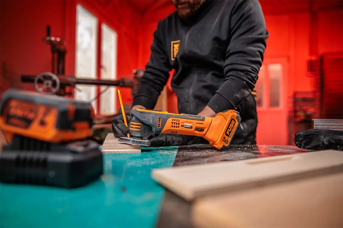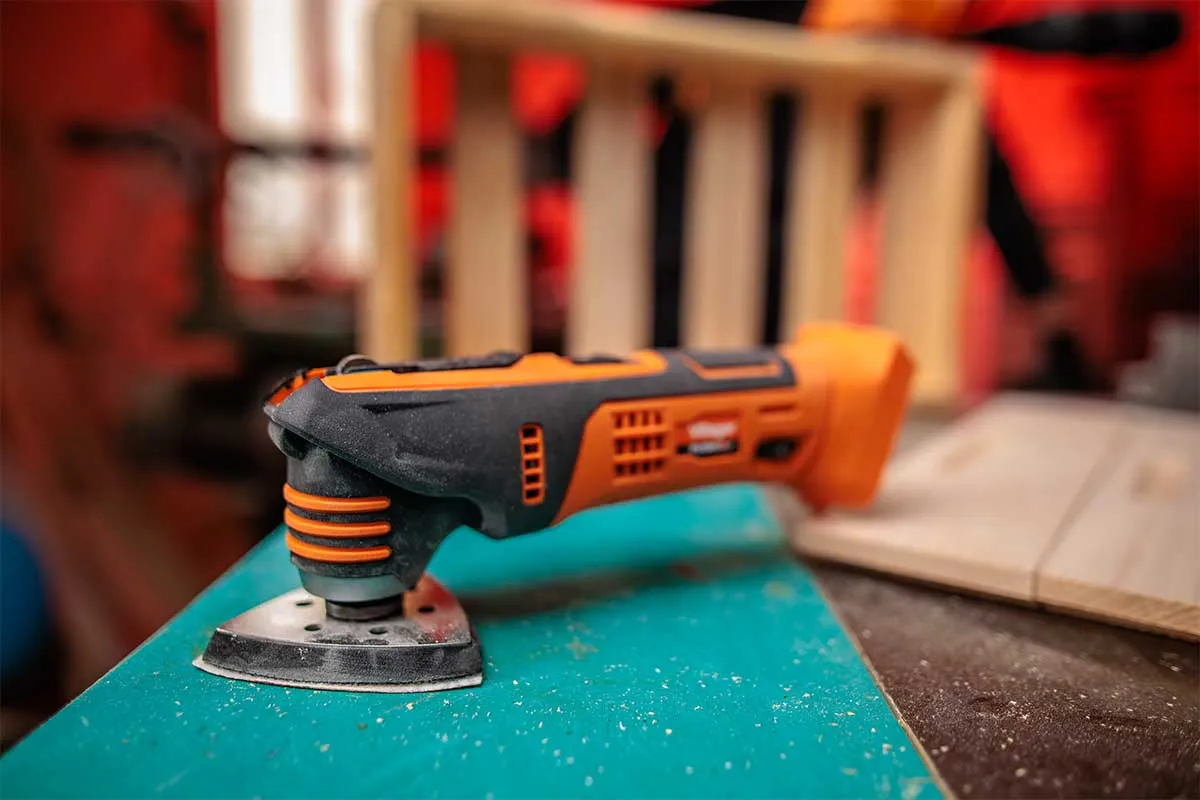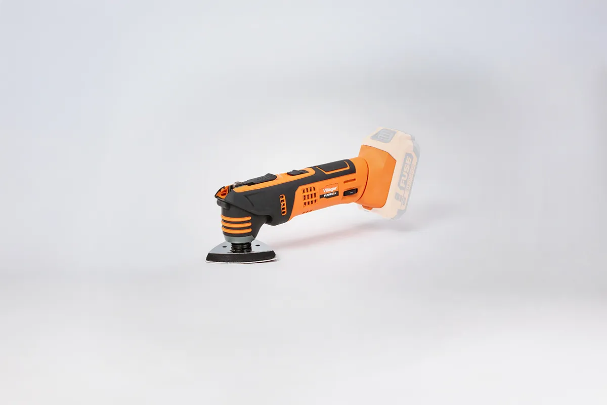Čas delovanja z baterijo Fuse: 1,5 Ah – 20 min 2 Ah – 30 min 3 Ah – 40 min 4 Ah – 60 min 6 Ah – 80 min Priporočeni tipi baterij: 1,5 Ah, 2 Ah, 3 Ah, 4 Ah Strgalo List žage Podloga za brušenje Brusni listi Opomba: Naprava se dobavlja brez baterije in polnilnika.