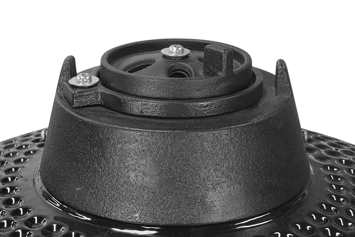 Premer žara: Ø 55 cm / 21,6 Premer rešetke: Ø 46 cm Zgornji ventil: litoželezo Stranska miza/ročaj: bambus Podstavek žara: jeklo Premer kuhalne rešetke: 6 mm Material žara: mulit Kupola žara: mulit Mulit, znan tudi kot porcelanit, je silikatni material, ki se pojavlja v obliki iglic znotraj porcelana. Mulit se šteje za ognjevarni material, ki ohranja svojo obliko in trdnost pri zelo visokih temperaturah. Odporen je do 1000 °C.