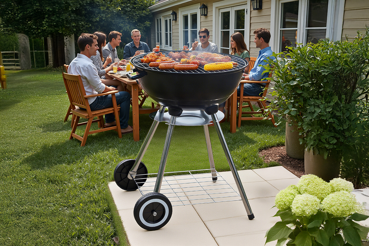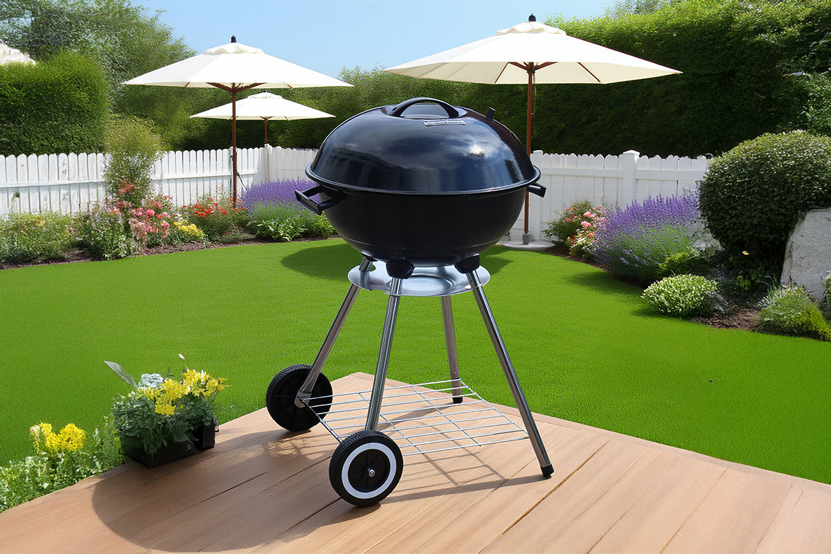 Dimenzije: 52 × 46 × 72 cm Premer kurišča: 46,3 cm, emajlirana prevleka Pokrov: črn emajliran Višina kurišča: 60 cm Dimenzija rešetke: 43 cm, kromirana Pocinkana rešetka za oglje